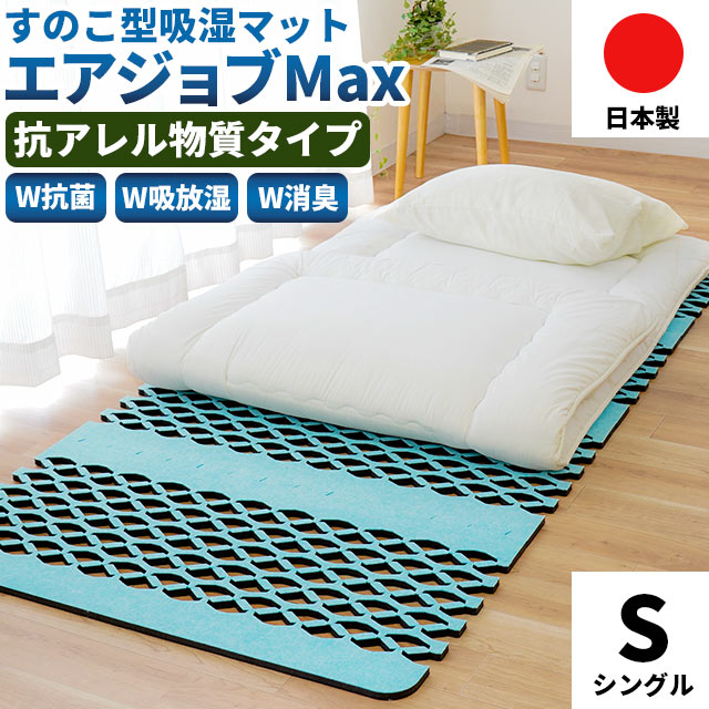 [ keyword | 除湿マット 除湿シート シングル エアジョブ マックス 日本製 じゃばら型 すのこマット 湿気センサー付き インエグジット アレルキャッチャー使用 通気性 吸湿性抜群 抗菌防臭 防ダニ 消臭 抗アレル物質 吸湿シート 吸湿マット ]