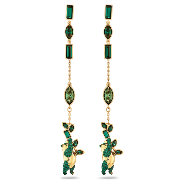 スワロフスキー 『Atelier グリーン Beautiful Earth ピアス』です。パンダとその好きな食べ物である竹に焦点を当てた新しいコレクションは、地球の豊かさと儚さを思い出させ、将来の世代のためにパンダを保護するように促します。この遊び心のあるピアスは、ゴールドトーンのメッキセッティングで鮮やかなグリーンクリスタルで輝きます。取り外して装着することも可能です。