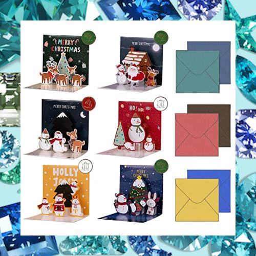 6枚 クリスマスカード 3D 立体 立つ Yoayao クリスマス メッセージカード 立つことできる 展開できる ポップアップカード おしゃれ お祝