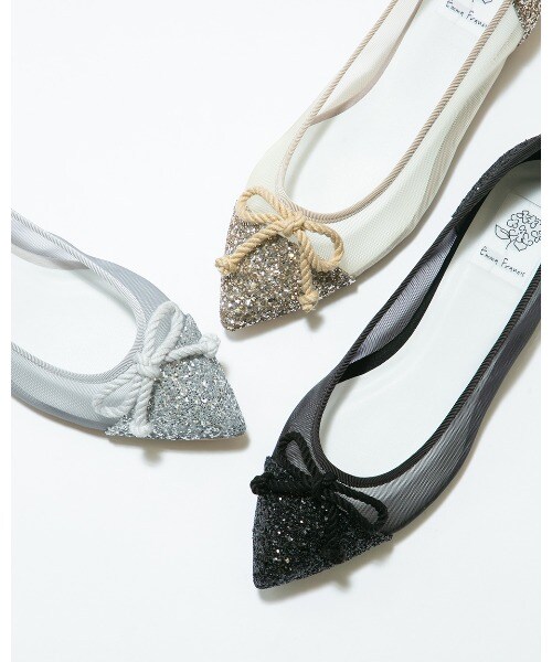 エマフランシス(Emma Francis)/ポインテッドトゥ チュール フラットバレエシューズ