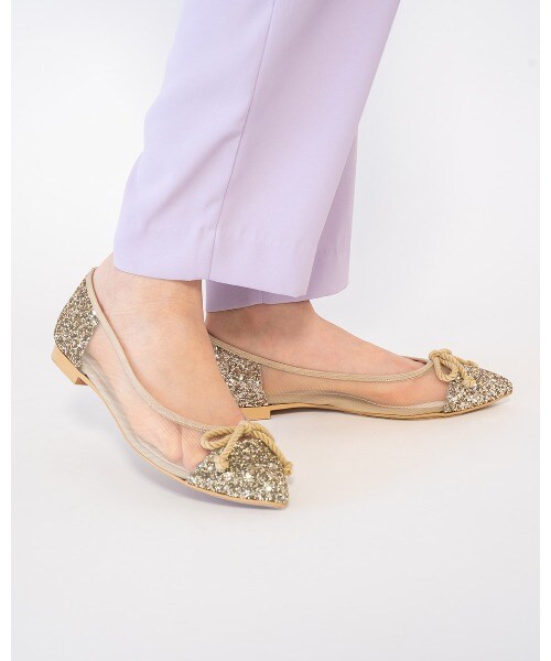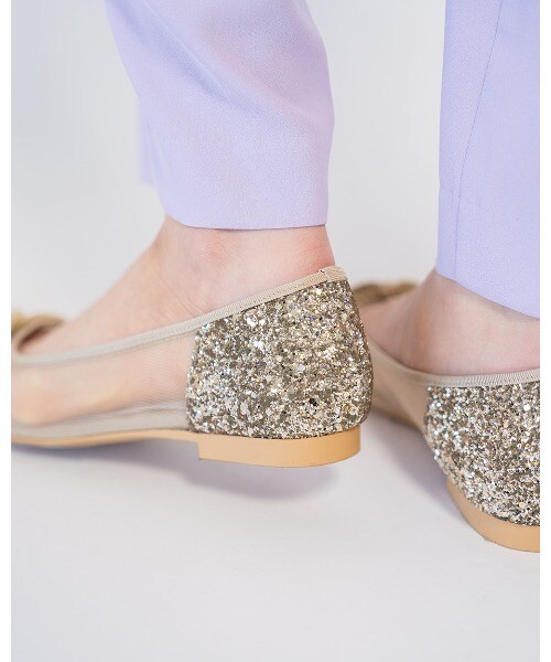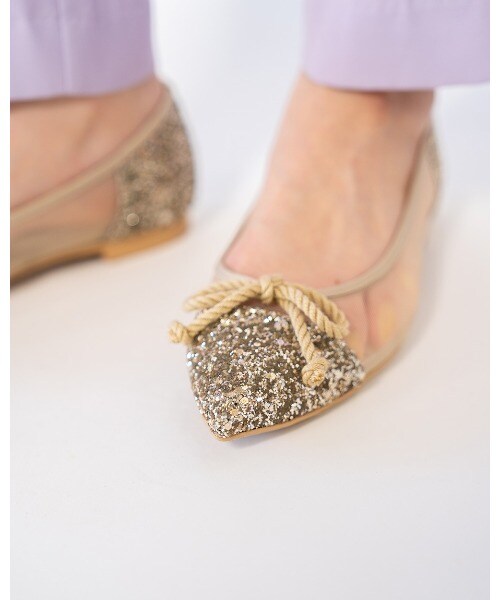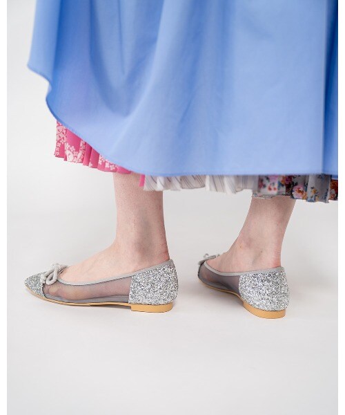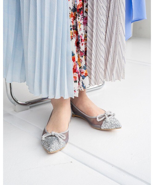 チュール素材でポインテッドトゥでも柔らかな履き心地。