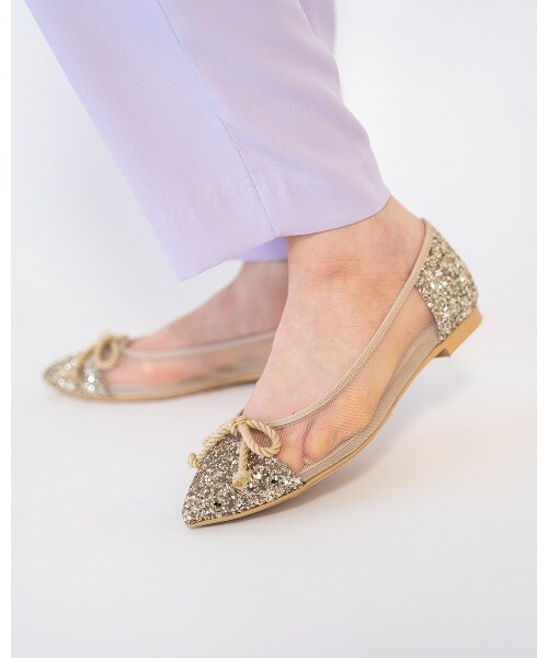 ポインテッドトゥ チュール フラットバレエシューズ