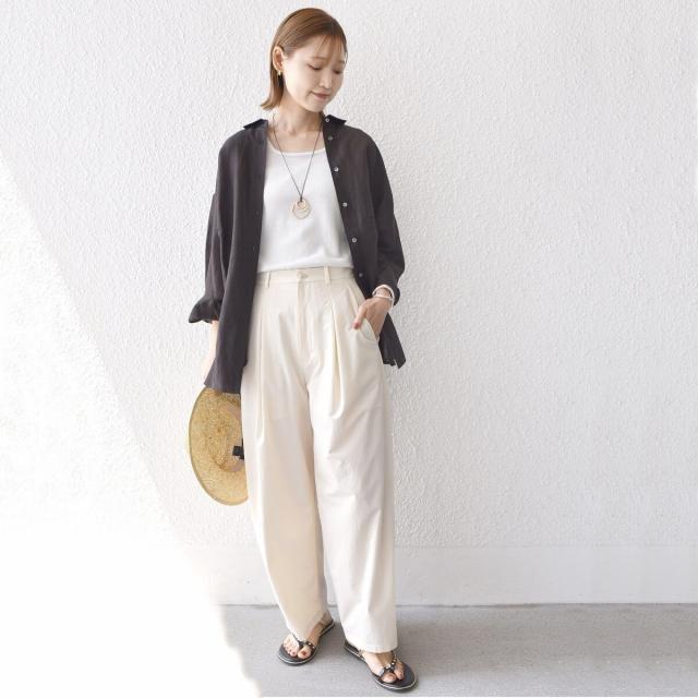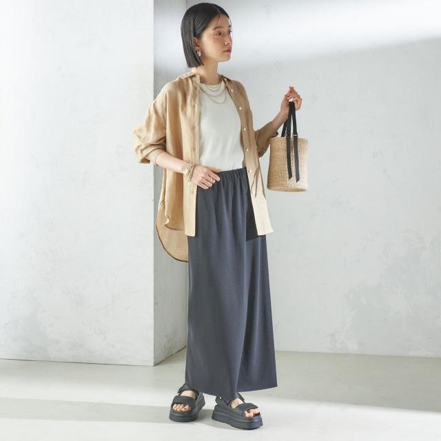再生繊維(セルロース)の落ち感を兼ね備えた素材感で、張りすぎず適度に体に馴染んでくれます。