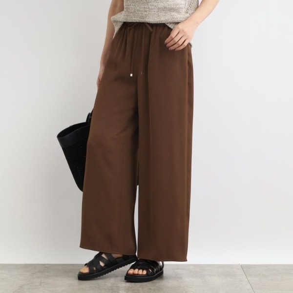 【洗える/ウエストゴム】エアリーサテンワイドパンツ