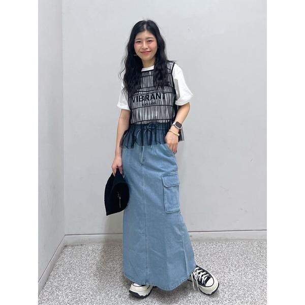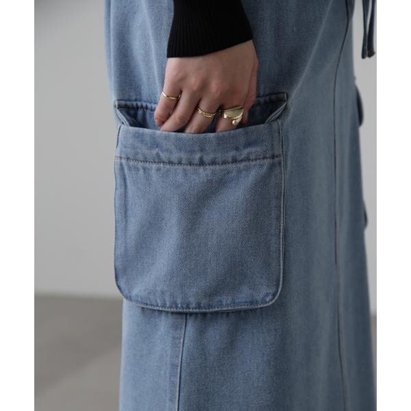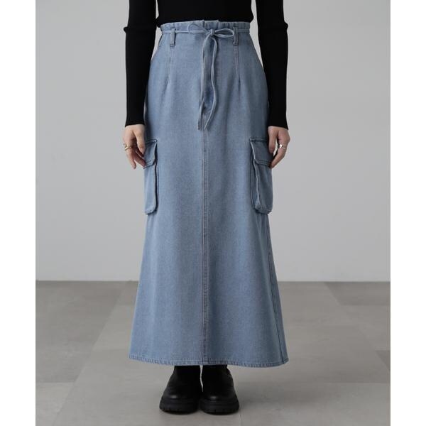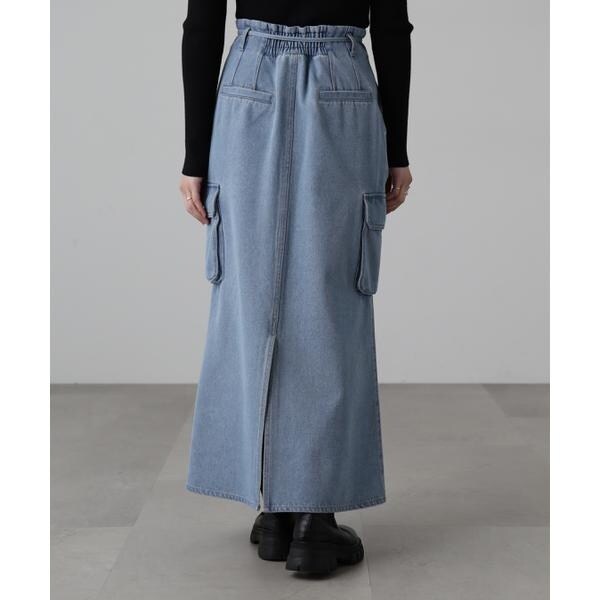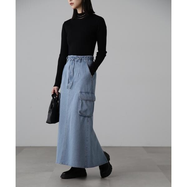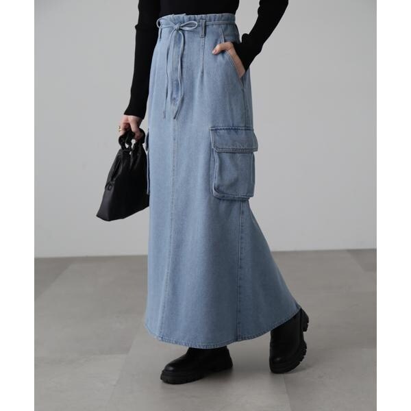 季節を選ばず使えるカーゴデニムナロースカート。シルエットが綺麗なナローシルエットにマチ付きポケットをのせ、カジュアルでトレンドライクな雰囲気に仕上げました。ハイウエスト設定で、ウエスト周りをすっきりと見せてくれます。後ろウエストはゴム仕様でラクなはき心地。トレンドのショート丈トップスはもちろん、ウエストインしてすっきり見せるコーデもお勧めです。※こちらの商品はXSサイズの展開がございます。◆サイズ目安◆XSサイズ→身長150cm−152cm ウエスト57cm−59cm※モデルの着用画像の場合、光の当たり具合により、実際の色味と異なって見えることがございます。色味は、商品単体の画像をご参照ください。