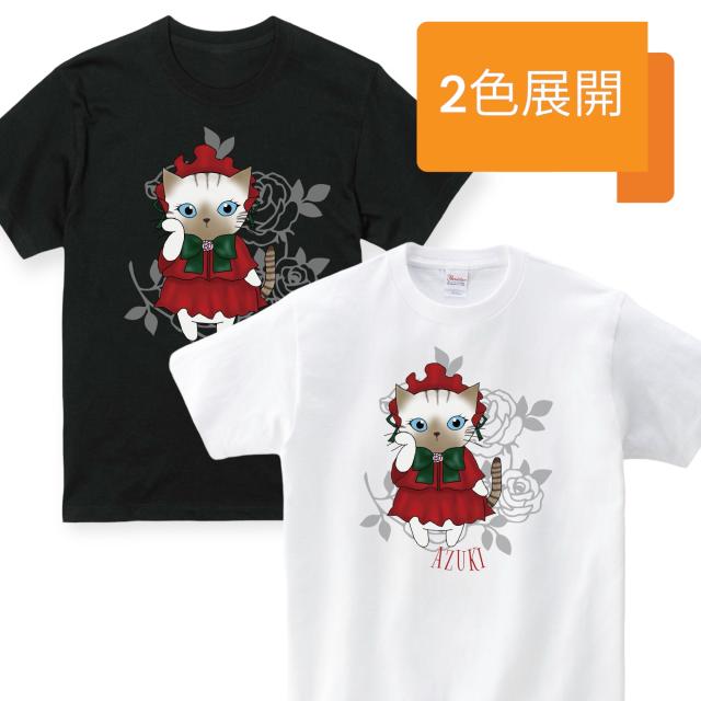 男女兼用 黒白2カラー有 夏 綿 猫 黒猫 猫グッズ ゆったりフィット 半袖Tシャツ あずきロリータ ノゴロー0506