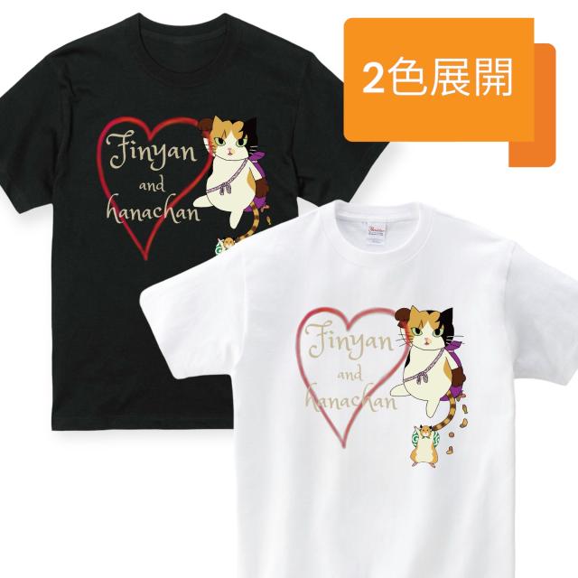 男女兼用 黒白2カラー有 夏 綿 猫 黒猫 猫グッズ ゆったりフィット 半袖Tシャツ ハートフィニャン ノゴロー0506
