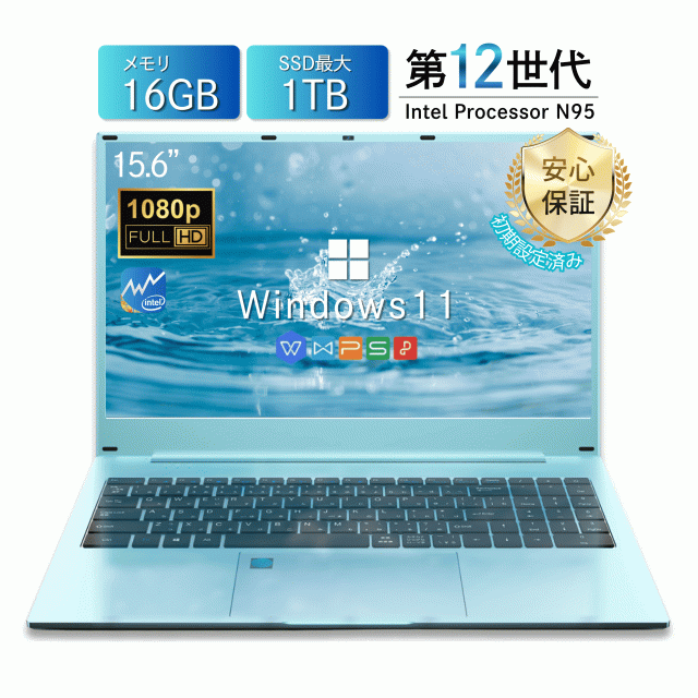 ノートパソコン 新品 Windows11搭載 Office付き 15.6型 Intel N95 CPU搭載 メモリ16GB SSD512GB IPSフルHD液晶 テンキー付き Webカメラ付き 高速SSD 初期設定済み 青