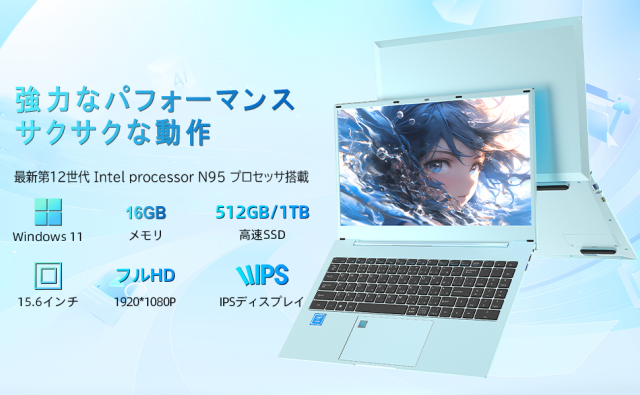 第12世代Intel N95×16GBメモリの爆速仕様。WPS Office 2搭載で仕事・学習に即戦力。SSDは最大1TBまで選択可能!