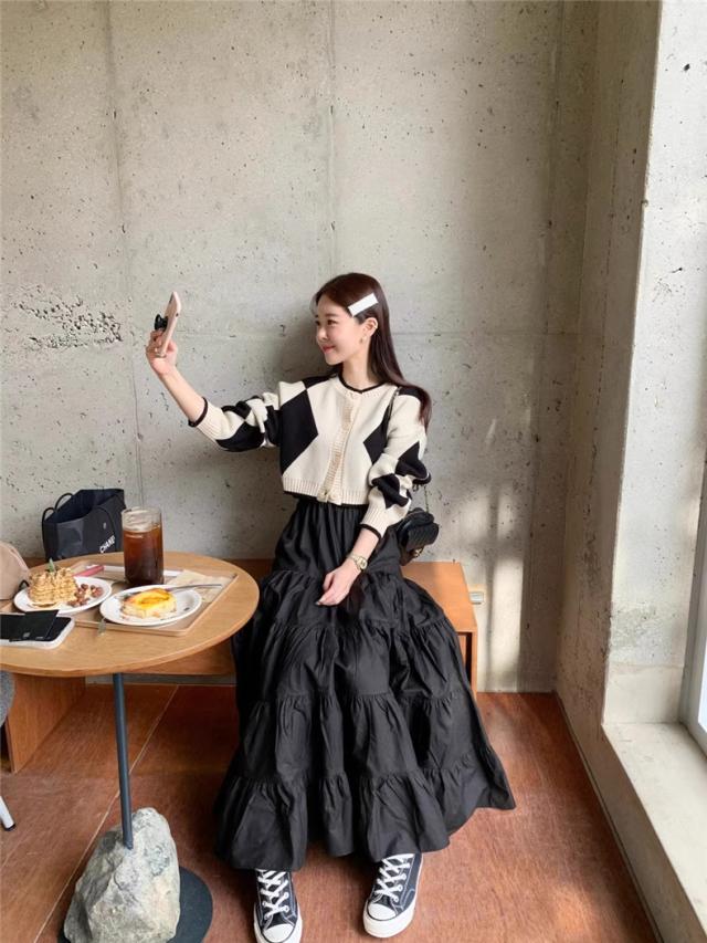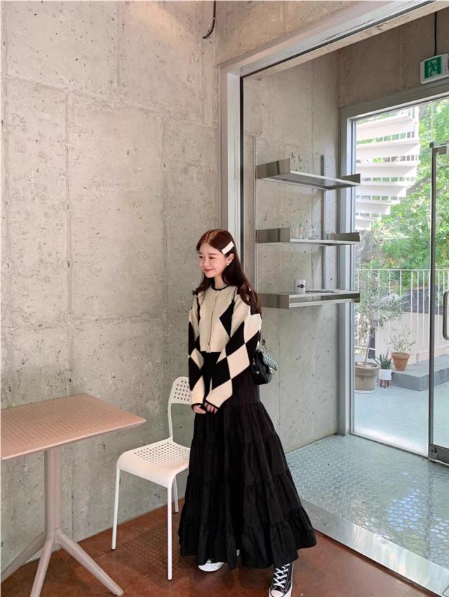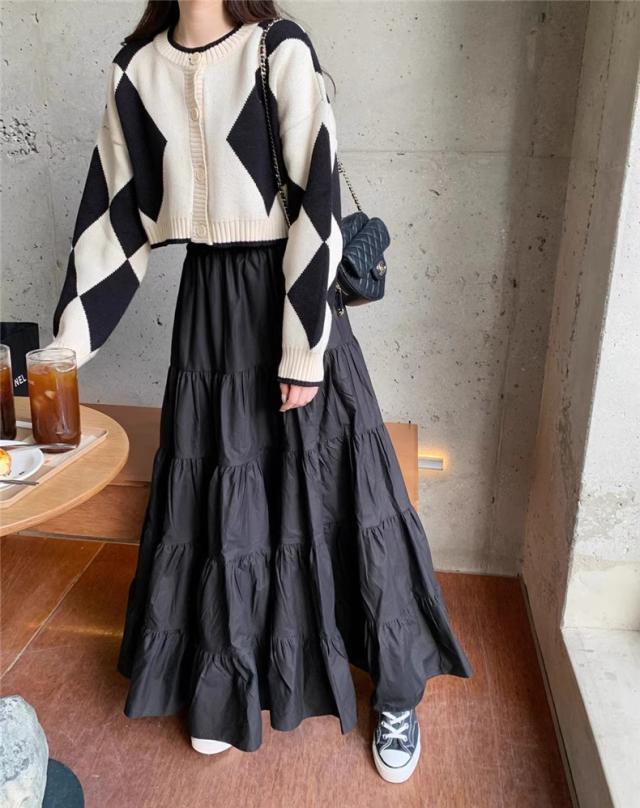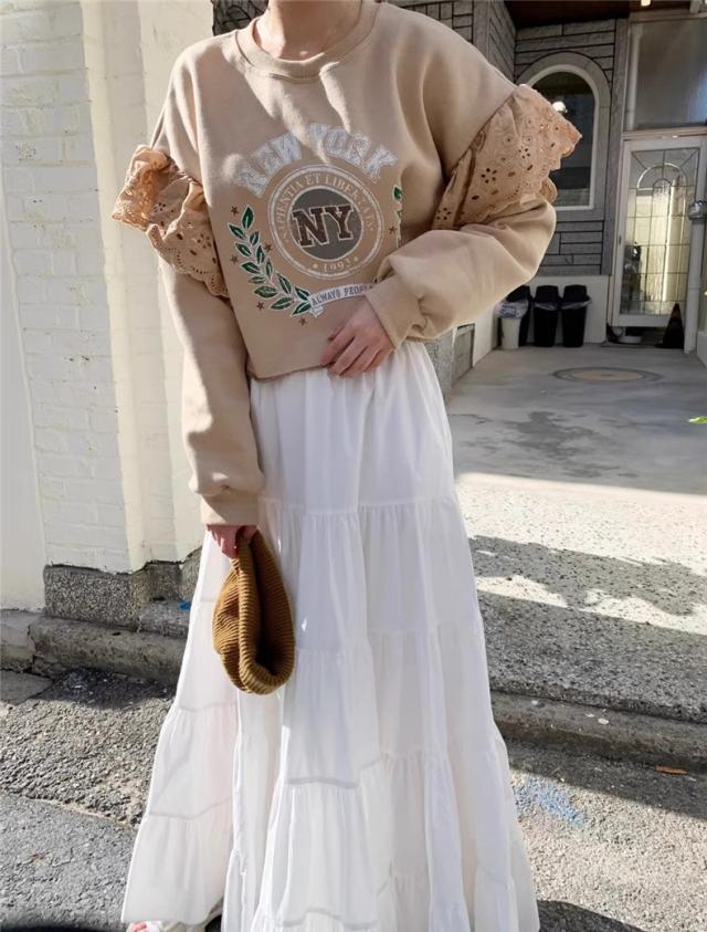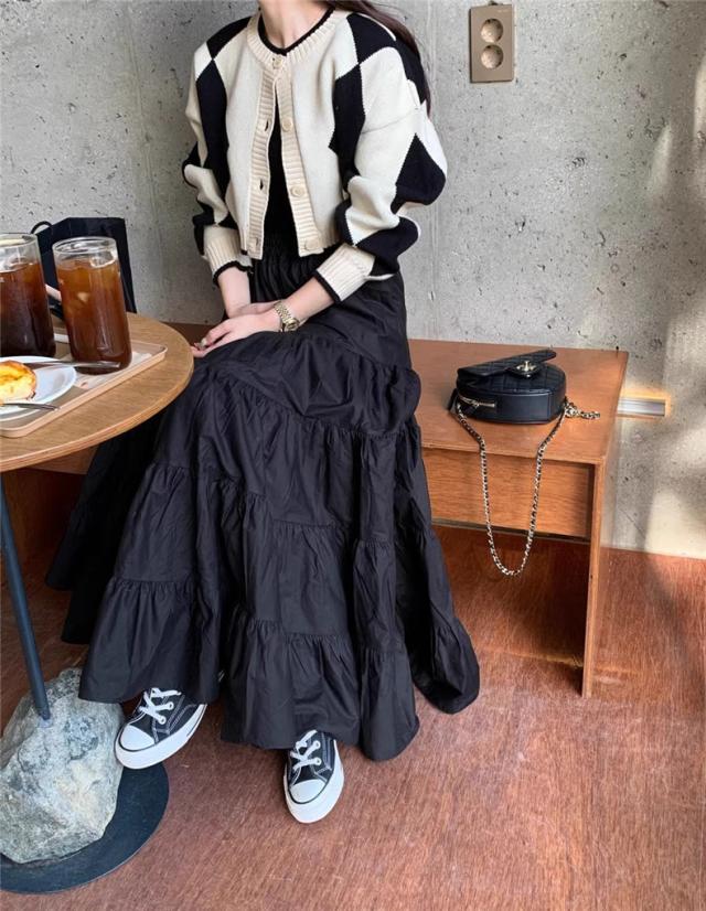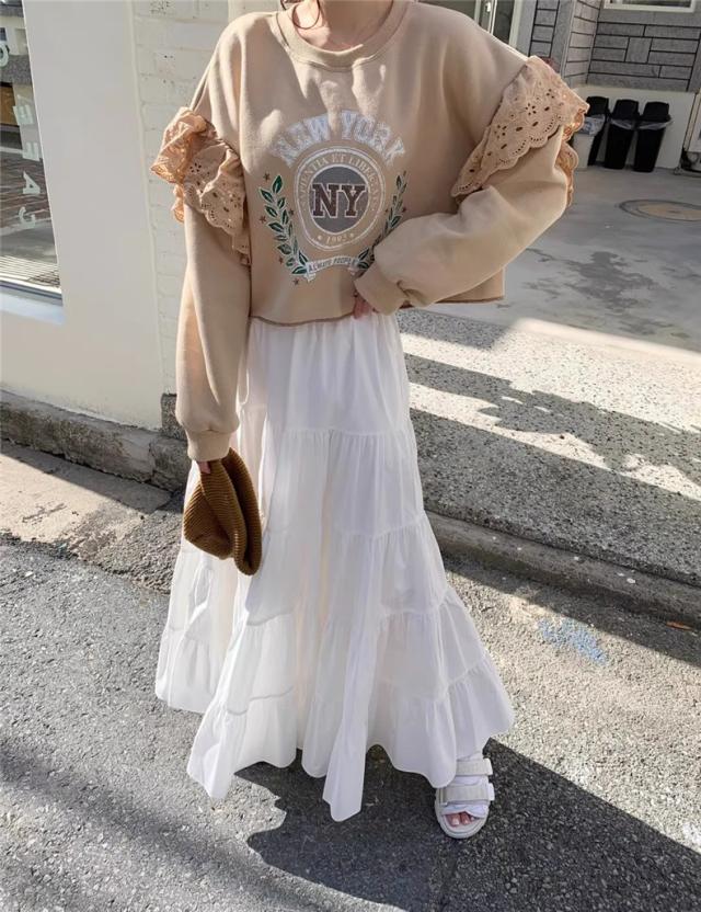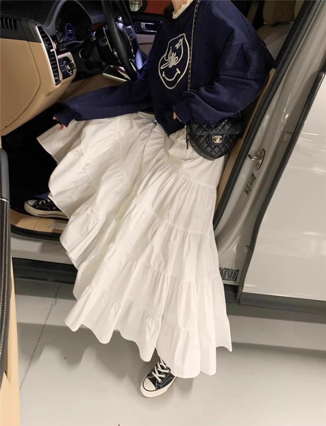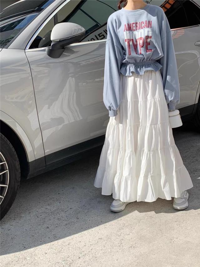 春秋スカート レディース ボトムス ロング丈 フレアスカート Aライン ウエストゴム 体型カバー ゆったり 大人エレガントにもカジュアルめにもGOOD