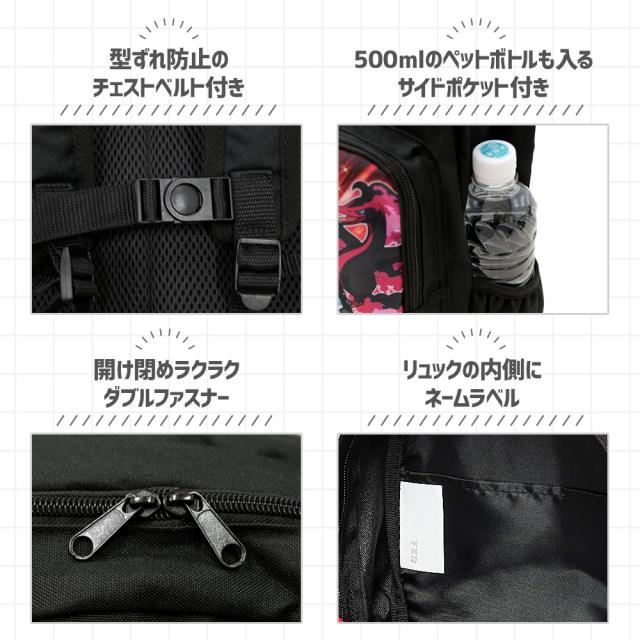 POCKET MONSTERS ポケットモンスター 子供用リュック 全4種 暑い夏でも快適 背当て部分は保冷剤を入れられるポケット付き。 メッシュクッション素材で、暑い夏にも快適な使い心地です。 チェストベルト付きで動きやすい 肩ベルトにはずり落ち防止のベルトが付いているので動きやすさも抜群! 両手を自由に使えるので、お子様が動きやすいのが嬉しいリュック。 お弁当箱や水筒、タオルや着替えなどもしっかり入るサイズです。 幼稚園や保育園などはもちろん、遠足やちょっとしたお出かけ、 入園入学などのプレゼントにもおすすめです。 |