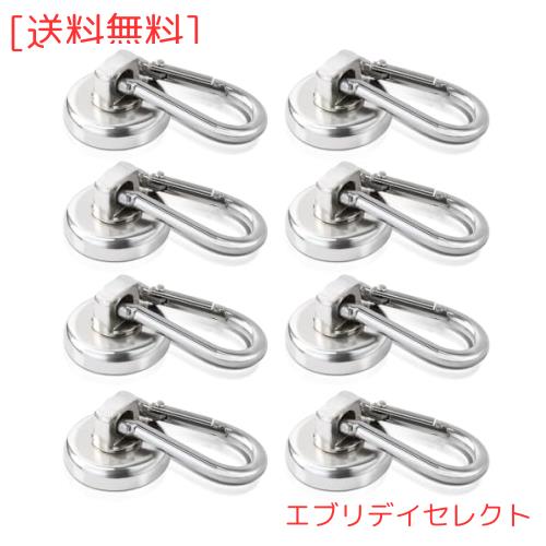 8個セット カラビナ フック 超強力 マグネット フック 360度回転できる カラビナ付き磁石 ネオジム磁石 磁気カラビナ 防錆 超強力磁石 キ