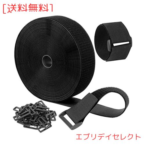 マジック結束バンド 面ファスナー 長さ12m*幅5cm 40個バックル付き 荷締めベルト ベルクロ 耐熱 自由にカット 繰り返し 荷物梱包 収納用