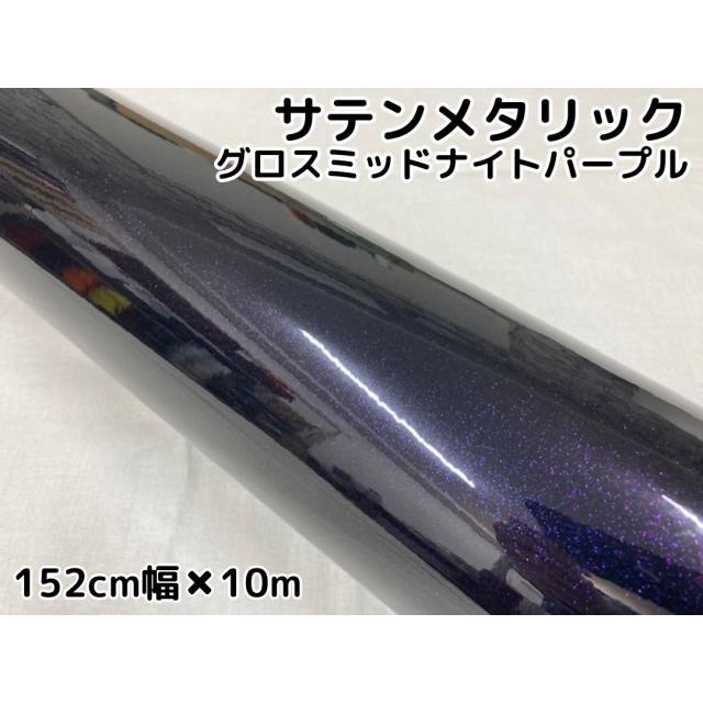 サテンメタリックグロス 152cm×10m 艶ありミッドナイトパープル カーラッピングシートフィルム 耐熱耐水曲面対応 裏溝保護フィルム付 ラッピングフィルム