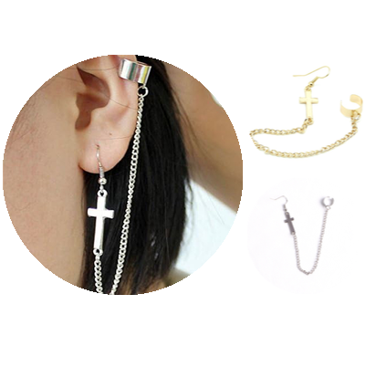 片耳用 十字架 ピアス ★ レディース ジュエリー ピアス イヤー カフ フェイク 耳飾り イヤリング アクセサリー 2色 B20-6