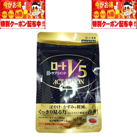 ロートV5粒 アクトビジョン 62粒 約2か月分 ロート製薬 目のサプリメント ルテイン ゼアキサンチン 1日1粒 機能性表示食品