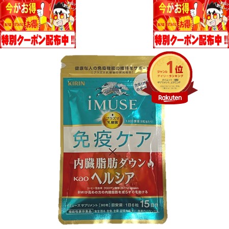 イミューズ iMUSE 免疫ケア ヘルシア 内臓脂肪ダウン 90粒 15日分 キリン 協和発酵バイオ 機能性表示食品 免疫 内臓脂肪 ヘルシア 乳酸菌 プラズマ乳酸菌 免疫 BMI クロロゲン酸