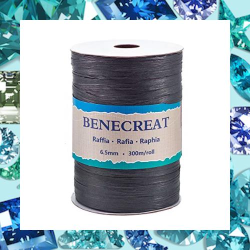 BENECREAT 全長300m幅6.5mmラフィア紙リボン ソフトペーパーラフィアリボン ギフト包装 花束装飾 ラッピング 黒色
