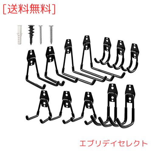 ガレージフック、12パックガレージ収納フックとハンガー、頑丈な壁掛けガレージオーガナイザー、はしご、自転車、ホースなどの道具収納 (