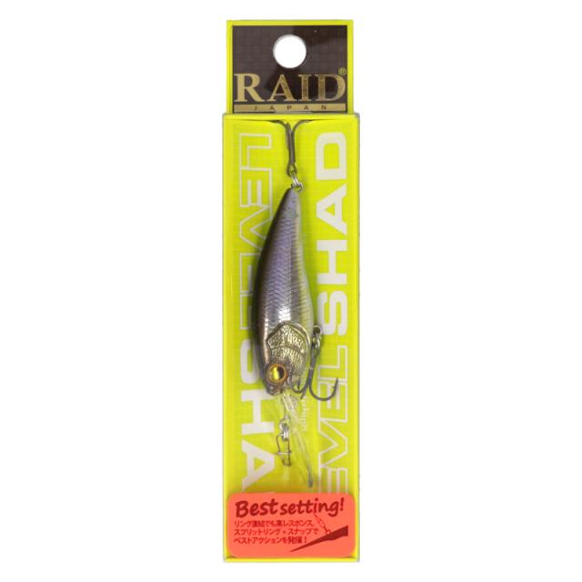 【レイドジャパン/RAID JAPAN】レイドジャパンがシャッドプラグに求めるエレメントを小型軽量ボディに詰め込んだ、いわば精密機器のようなテクノロジーの塊。岸釣りでの使用を前提とした場合、小型軽量ボディとはいえ絶対的な飛距離が出せなければその威力は半減してしまう。レベルシャッドは、「ボディシェイプ」「リップの空気干渉」「重心移動機構の設置」などトータルバランスの最適化によって、現存する50mm前半クラスシャッドプラグの中でも抜きん出たロングディスタンス性能を備えています。飛距離を安定的に出すことができるということは、魚に出会えるチャンスが増加するということ。しかし、ただ単に飛ばせば良い訳ではありません。キャストした先で魚に対し魅力的なアクションを発する必要があります。レベルシャッドは、まるで逃げ惑う小型ベイトフィッシュのような極めて細かく速いピッチでアクションします。それは、これまで体感したことのない別次元の振動。[レベルシャッド][24new16]
