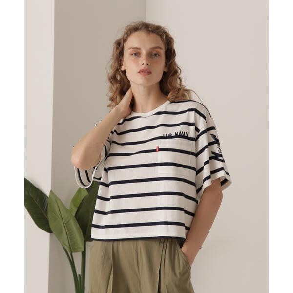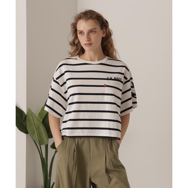 ・U.S.NAVYモチーフのステンシルプリントが程よいアクセントになっており、シンプルすぎずこなれた雰囲気を演出してくれます。