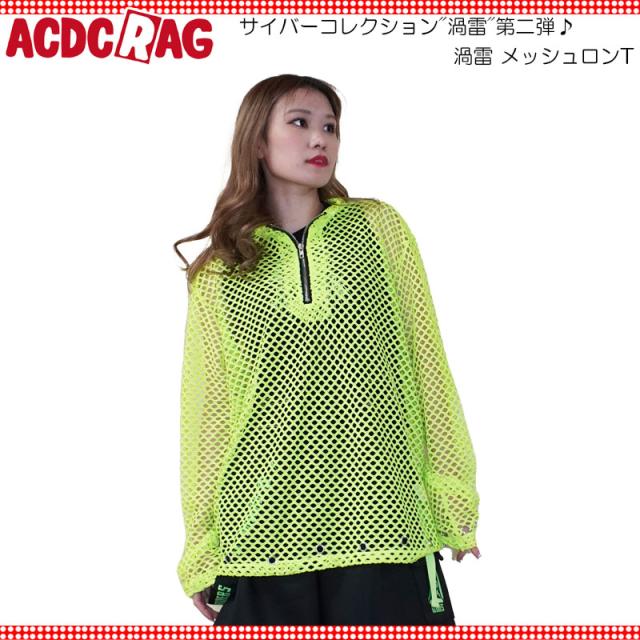 ACDC RAG エーシーディーシーラグ 渦雷 メッシュロンT Tシャツ 長袖 メッシュ 透け感 原宿 原宿系 ファッション サイバー サイバーパンク jr-514-125 グリーン
