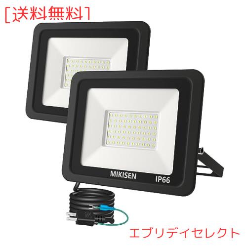 MIKISEN led 投光器 作業灯 看板灯 50w 昼光色 6000LM 6500K 600w相当 1.8コード IP66防水 アース端子付2Pプラグ 120°広角 100V対応 ワ
