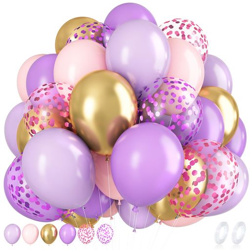 ??商品内容:パープル風船20個、ピンク風船19個、金属風船5個、紙吹雪風船6個、リボン1巻。
