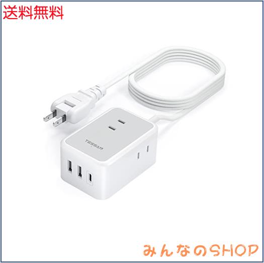延長コード 5m TESSAN 電源タップ usb付き usb-c コンセントタップ 3個ACコンセント USB-C 1ポート USB-A 2ポート たこあしコンセント 分