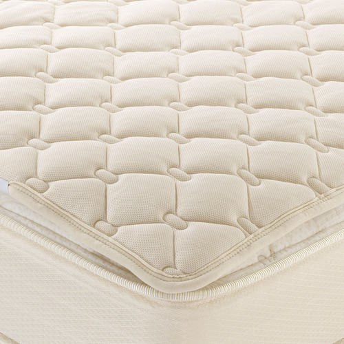 英国産羊毛(ドーセットホーン種)を贅沢に使用することで、ふんわりとしたクッション性と心地よいフィット感が魅力のベッドパッドです。羊毛は冬のイメージがありますが、実は綿や化学繊維よりも優れた吸湿発散性を持っています。湿気をすばやく吸収してくれるので、一年を通じてさらっと快適にお使いいただけます。※四隅ゴム付きです。