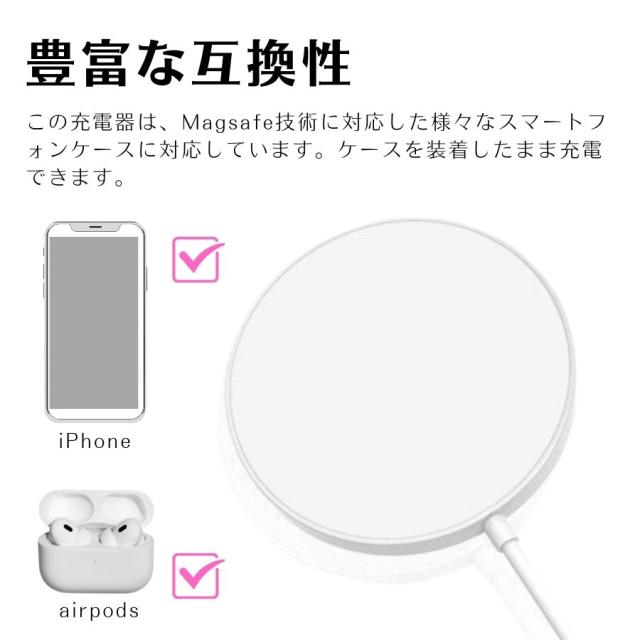◎ 様々なMagsafe対応のスマホケースに適応: Magsafe充電器は、Magsafe技術に対応した様々なスマートフォンケースに対応しています。ケースを装着したまま充電できるため、スマートフォンを保護しながら便利に充電できます。
