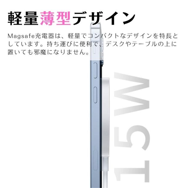 15W急速充電と薄型デザインで、スマホケースにも対応するMagsafe充電器。便利な充電体験を提供します。