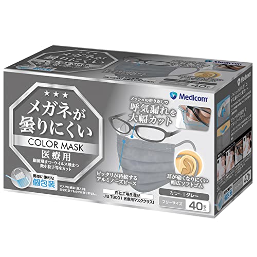 メディコムジャパン メガネが曇りにくいマスク 40枚入 グレー JMK200698