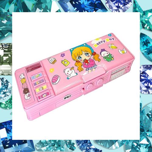 ◆商品名:Lilybeauty 筆箱 ペンケース 小学生 女の子 男の子 両面開き 多機能 パスワード ロック ふでばこ 鉛筆削り付き 文房具 可愛い(ピンク2)