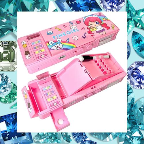 Lilybeauty 筆箱 ペンケース 小学生 女の子 男の子 両面開き 多機能 パスワード ロック ふでばこ 鉛筆削り付き 文房具 可愛い (ピンク)
