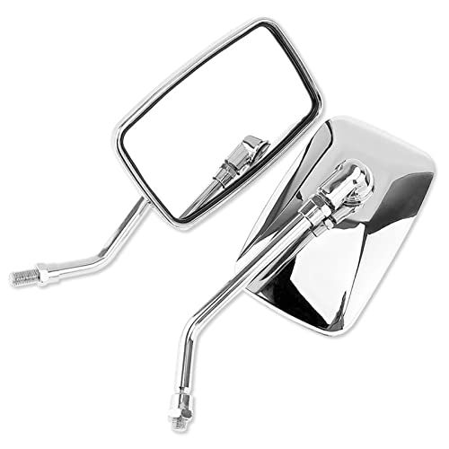 Yuumo+ バイク メッキ ミラー オートバイ ハンドル 角型 汎用 スタンダード 正ネジ 10mm 左右 セット