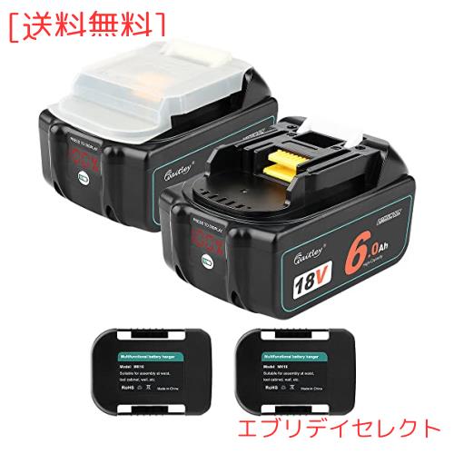 waitley互換マキタ 18V バッテリー 2個セットLED%残量表示付き バッテリーホルダー付きBL1860B BL1830 バッテリー 6000mAh 大容量 PSE認