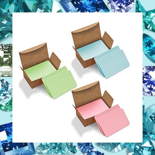 VANRA カード 無地 名刺サイズ 用紙 メッセージカード 情報カード 単語カード ブランクカード 角丸 手書き 300枚 (1青+1ピンク+1緑)