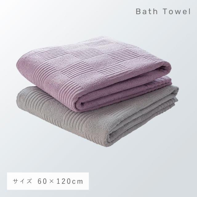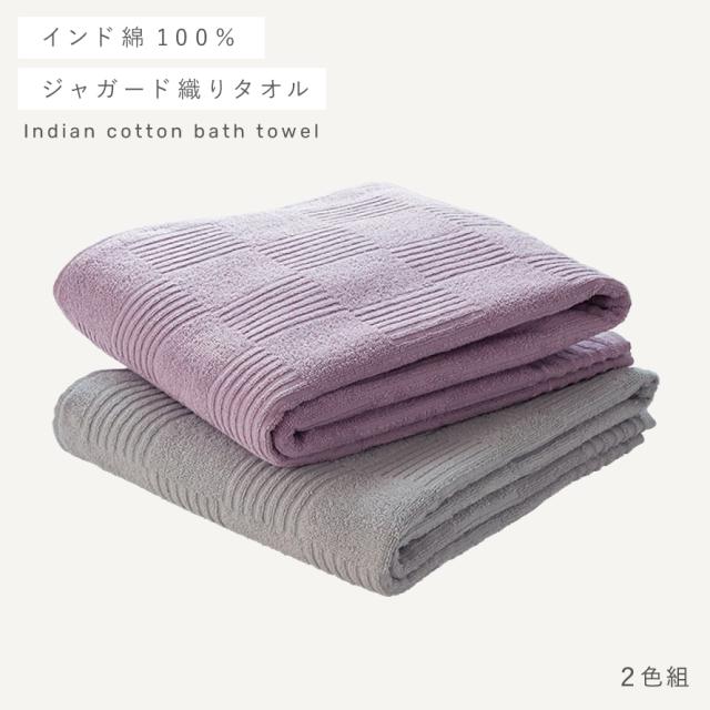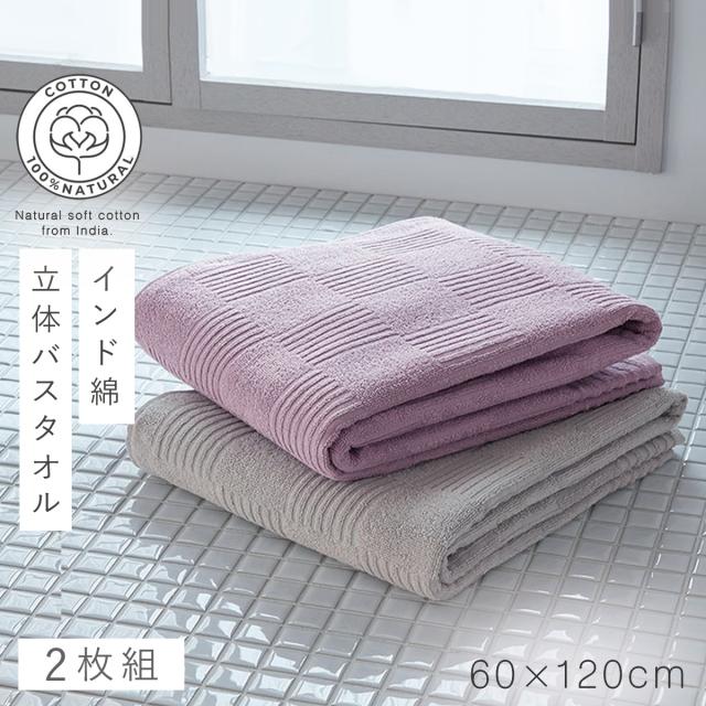 バスタオル 60×120cm タオル ホテル仕様 乾きやすい タオル 綿 100 インド綿バスタオル 2色組 グレー・ライラック