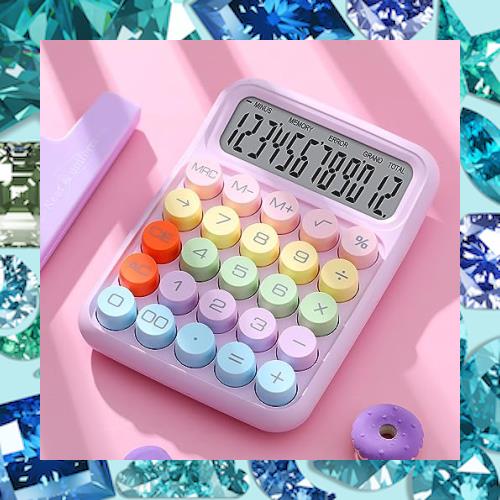 Drawzone 電卓 おしゃれ 12桁 計算機 電卓 大きい かわいい 丸ボタン 大型LCDディスプレイ 計算機 滑り止め 持ち運び便利 簿記 日常と基
