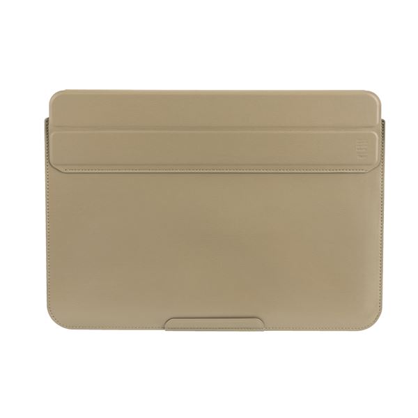 ●さっと取り出せる、スタンドになる軽量レザースリップインケース。MacBook Air 〜13.6インチ、MacBook Pro 〜14インチ対応。