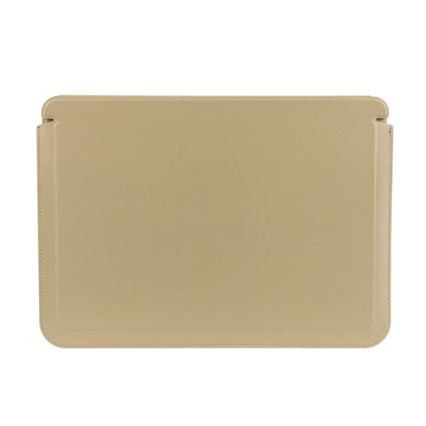 ●上質で柔らかなPUレザーを使用。マチの無いフラットな形状。スタンド部はマグネットで簡単に固定。スタンド高さ約4cm。PCを支える滑り止めストッパー。※スタンド部のマグネット固定は、生地が馴染むまで固い場合があります。