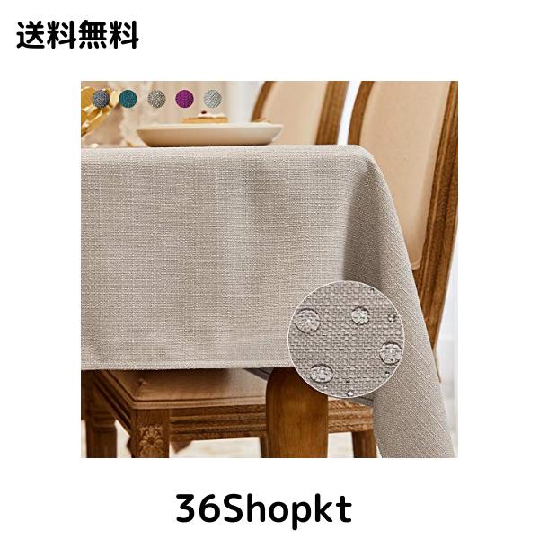 BALCONY&FALCONテーブルクロス 撥水 北欧 無地 類麻 145*215cm(ベージュ)