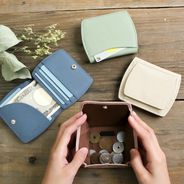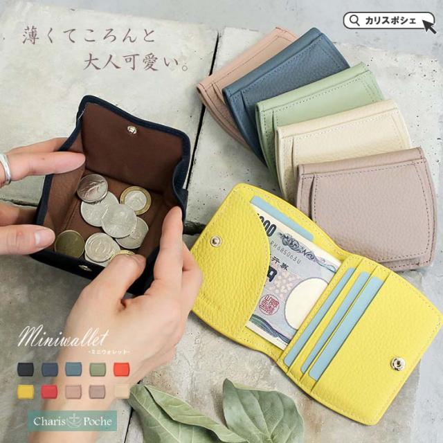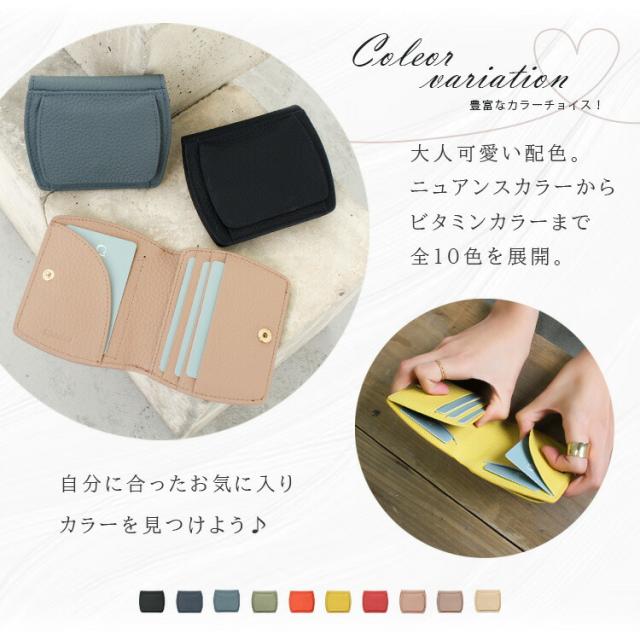 二つ折り財布 財布 レディース 本革 シュリンクレザー かわいい 薄い 軽い スリム 小銭入れ レディース財布 ブラック ブルー グリーン ピンク イエロー オレンジ ネイビー アイボリー レッド スモーキーカラー ab-lw507