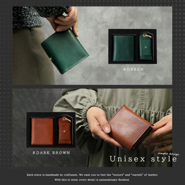 レザーウォレット ミニ財布 スマートキーケース ギフトセット ブック型コンパクトウォレット メンズ レディース ユニセックス 本革 イタリアンレザー 小銭入れあり メンズ財布 ブラック ブラウン ダークブラウン ダークグリーン ブルー lw243-2set