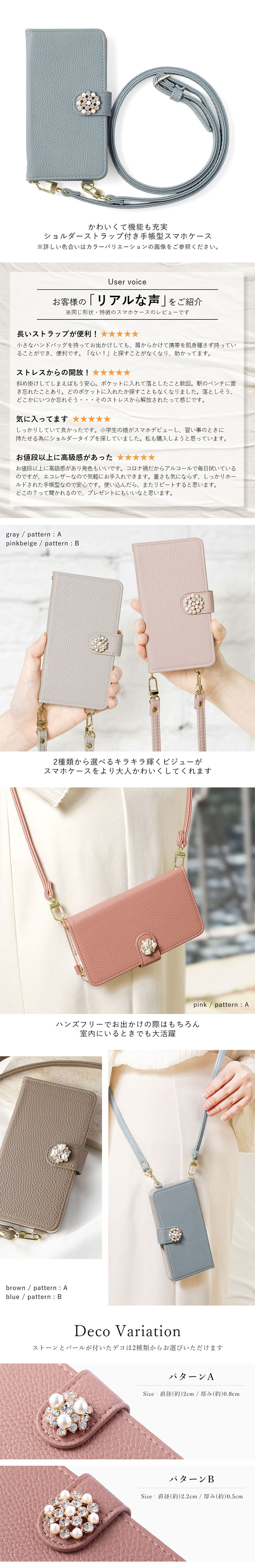 ショルダータイプの手帳型ケース全5色×クリスタルパール2種