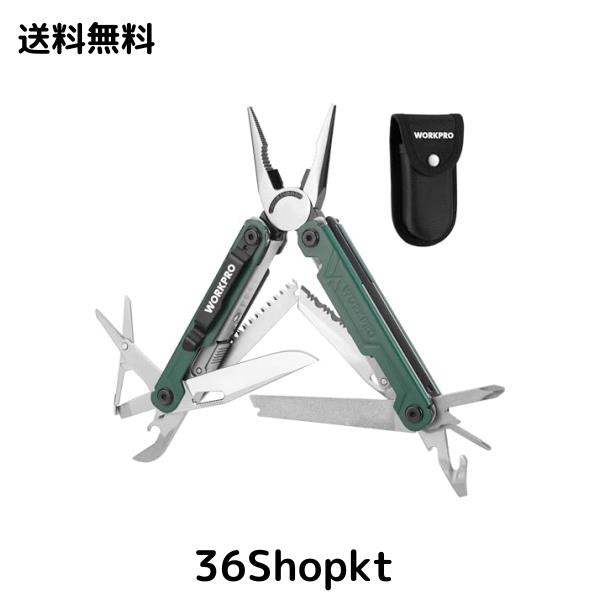WORKPRO 多機能ペンチ アウトドアマルチツール マルチペンチ 18-in-1 折り畳み ペンチ プライヤー ワイヤーカッター ノコギリ ヤスリ ド
