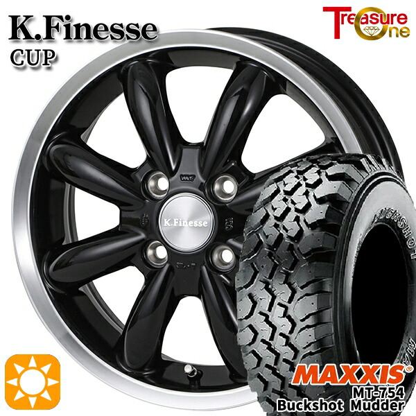 プロボックス ホイールセット 195R14 8PR 14インチ 4H100 トレジャーワン ケイフィネス カップ BK マキシス バックショットマッダー MT-754 OWL