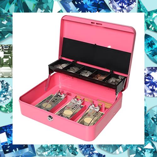 Jssmst(ジェスマット) 手提金庫 キーロック式 会計用コインケース 3つスプリングクリップ 紙幣整理 金属製 30x24x8.8cm(ピンク キーロ