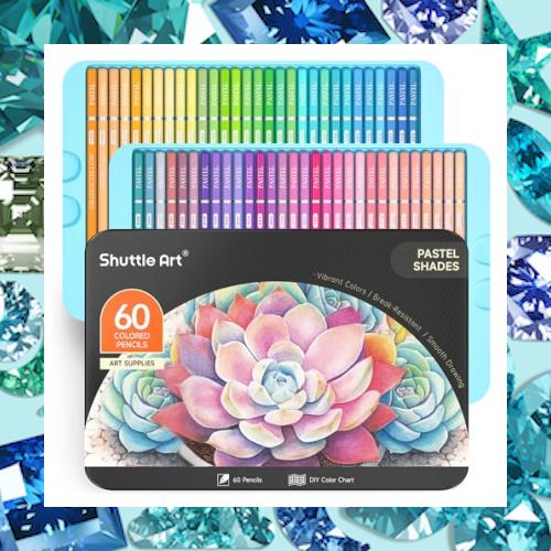 Shuttle Art 色鉛筆 60色セット パステル カラーペン 大人の塗り絵 イラスト デザイン スケッチ 落書き マカロン 缶ケース・カラーチャー